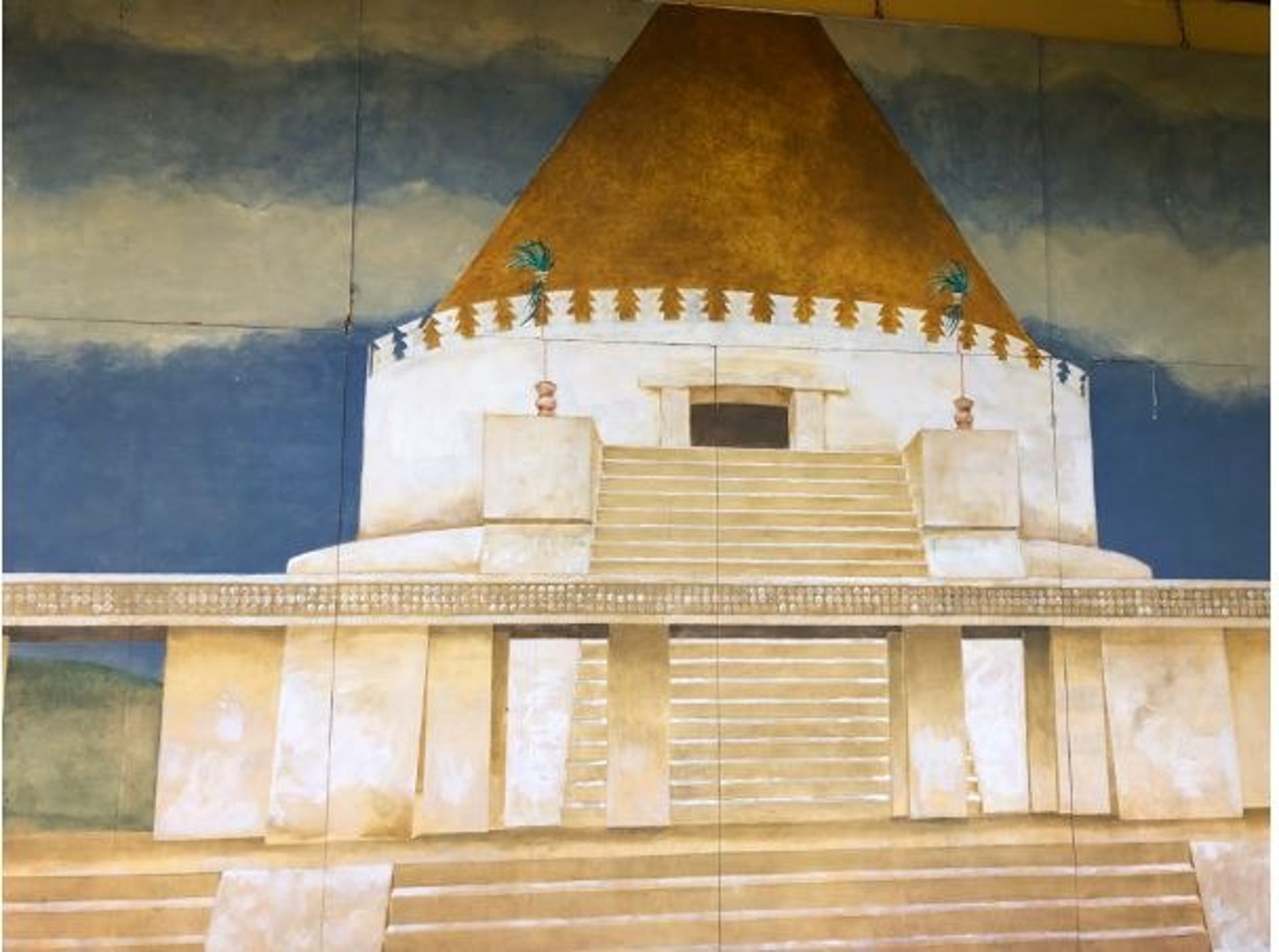 existe evidencia de transformación de la base del templo circular que consiste en una escalinata muy amplia de cuatro escalones definida por alfardas, cuya construcción corresponde al primer momento constructivo del monumento considerando los datos y antecedentes señalados, en la reconstrucción hipotética que se realizó del templo principal de Zultepec tecoaque