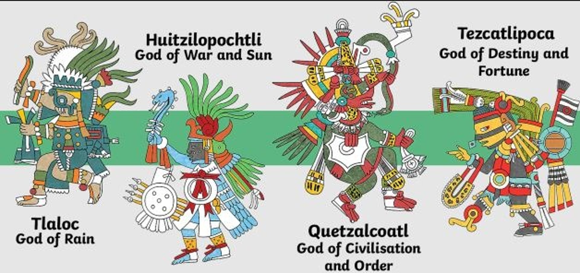en zultepec tecoaque no solo se le ofrecía tributo a dios Ehécatl ya que también se hallaron diferentes templos dedicados a Tláloc (dios del agua), Mictlantecuhtli (dios de los muertos), Tezcatlipoca (dios de la riqueza)